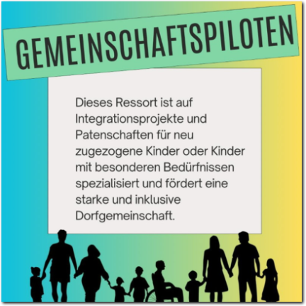 Im Ressort Gemeinschaftspiloten setzen wir uns für eine inklusive Dorfgemeinschaft ein.